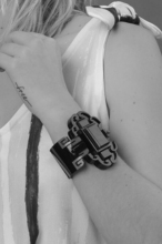 Construction: multi-piece sculptural design that opens fully for easy on/off